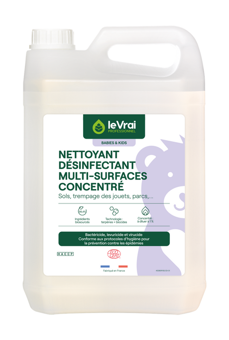 49,90€Prix unitaire /IndisponibleDETERGENT DESINFECTANT MULTI SURFACES CONCENTRE BABIES & KIDS LE VRAI PROFESSIONNEL 5L