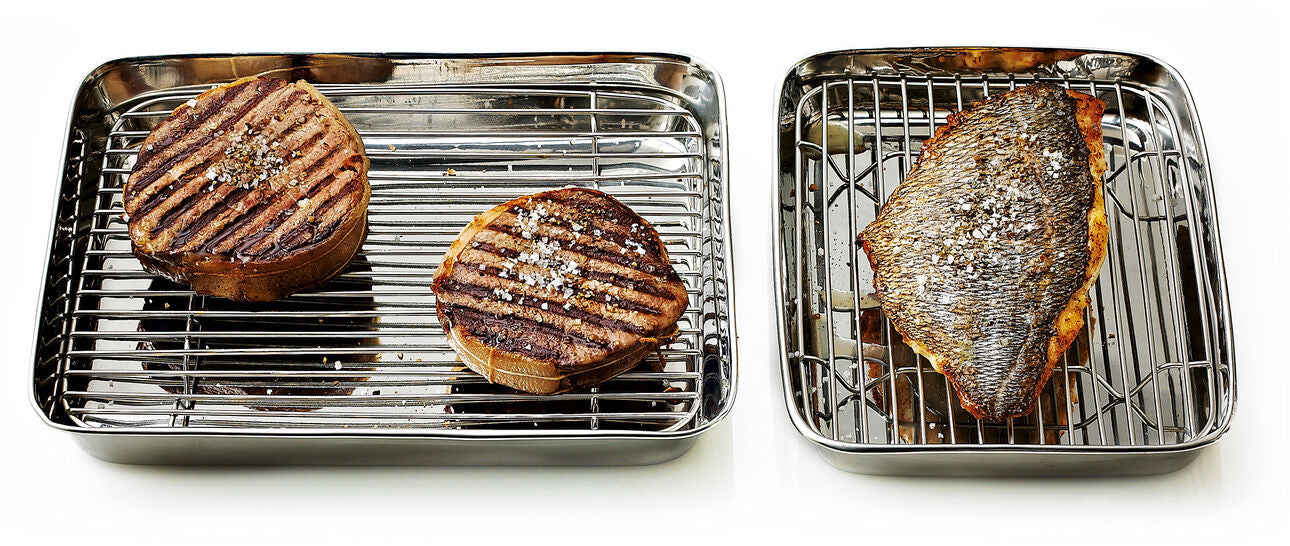 MINI-PLAT JAPONAIS INOX AVEC GRILLE 24X19 CM