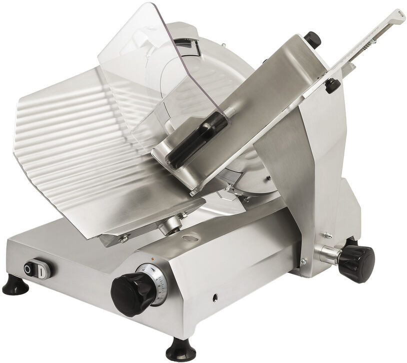 Cette trancheuse électrique robuste, dotée d’un chariot en aluminium anodisé et d’un affûteur intégré, facilite la découpe de tous types d’aliments avec un réglage précis de l’épaisseur. Adaptée aux besoins des traiteurs et restaurateurs, elle optimise la productivité tout en assurant une manipulation sécurisée et un nettoyage aisé, répondant ainsi aux exigences des environnements professionnels exigeants.